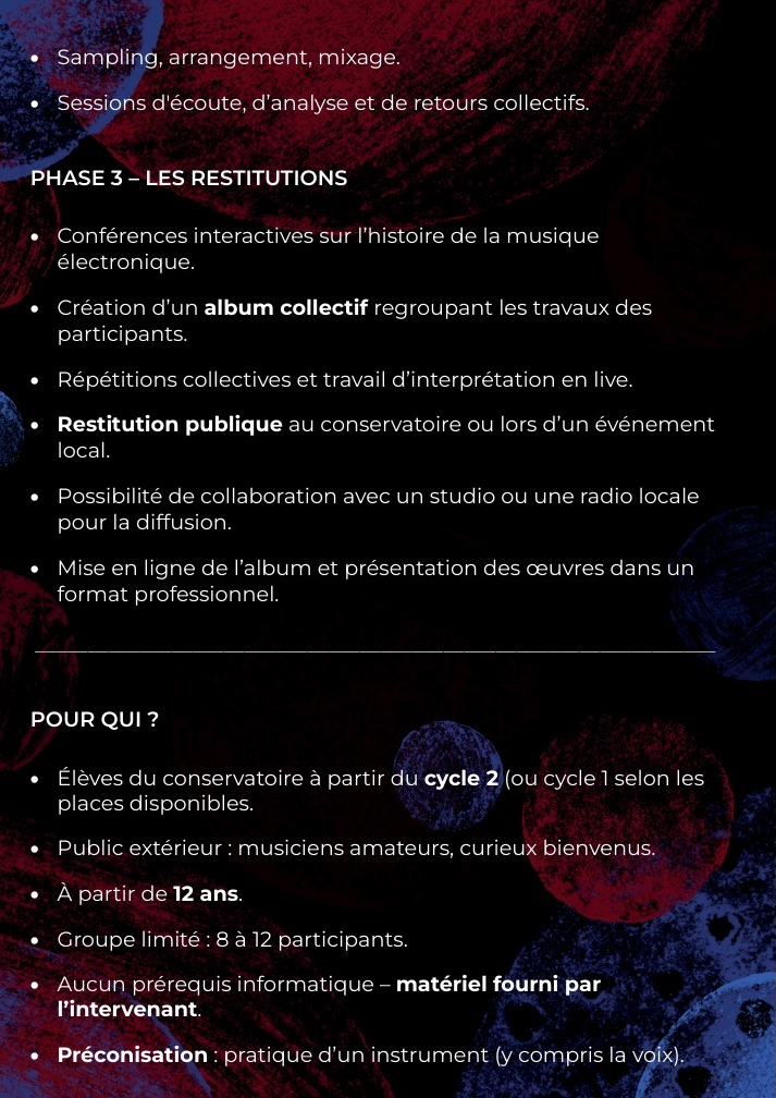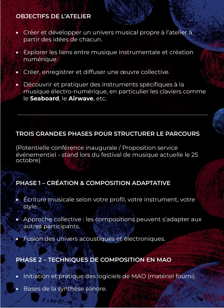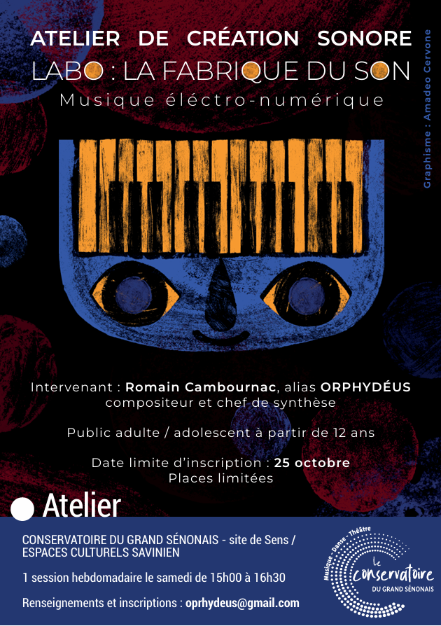 Atelier Atelier de création sonore LABO : LA FABRIQUE DU SON Inscription et renseignement : oprhydeus@gmail.com